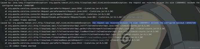 I don't often implement file upload with Spring Boot, so when I tested the upload, I got the following exception: "the request was rejected because its size (18889091) exceeds the configured maximum (10485760)".