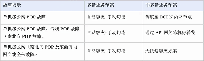 In response to the problems encountered in this outage, we re-evaluated the contingency plans and improvement measures for single computer room outages. We found that the overall damage mitigation plan for multi-active services is consistent, with a focus on the effectiveness of automatic disaster recovery and the efficiency of manual traffic switching; while non-multi-active services need to have multiple escape methods: origin pull via DCDN internal network nodes, or cross-computer-room forwarding via API gateway.