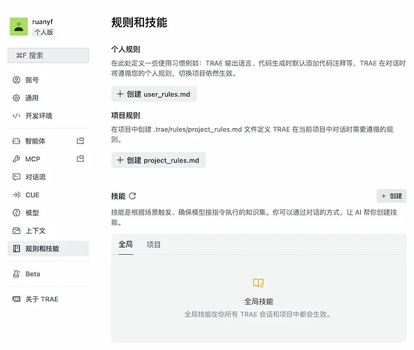 Open TRAE's "Settings/Rules and Skills" page.