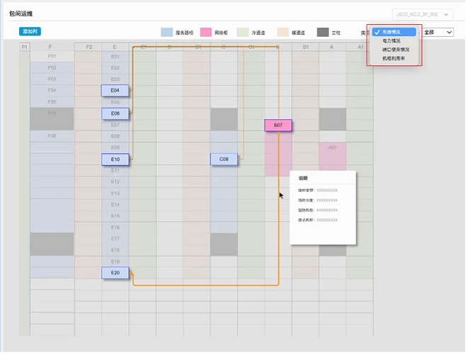 Figure 5 Display of the machine room layout interface built on the platformSummarizing daily cabling requirements, we have integrated and abstracted 6 high-frequency cabling scenarios, which are: