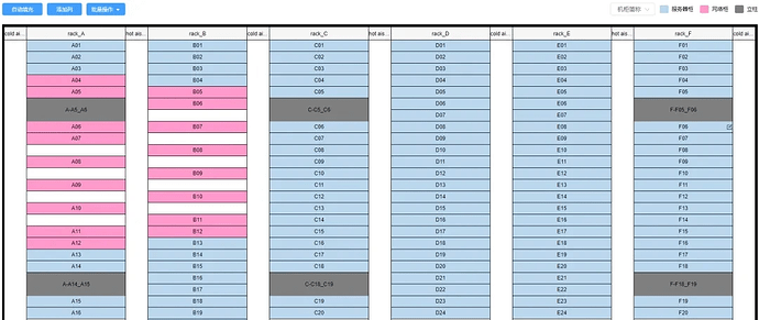 To automatically complete cabling route calculation, Bilibili uses a cost-effective method to quickly build a simple and clear schematic diagram of the data center room layout. Operation and maintenance personnel can draw the physical topology structure of the room by adding rows and columns, associate basic data, and establish the relative positional relationships of columns, aisles, and cabinets.